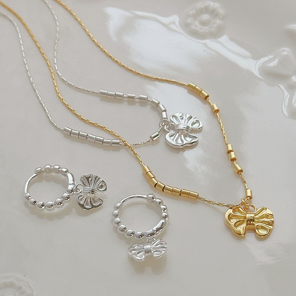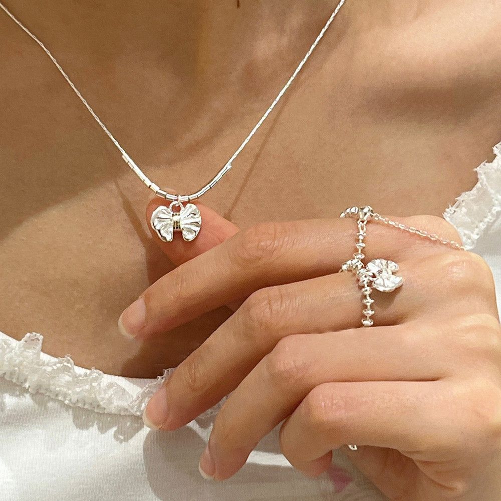 雲朵蝴蝶結 會動的串珠珠 純銀項鍊,Rencontre Boutique