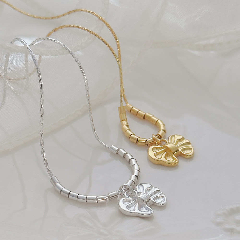 雲朵蝴蝶結 會動的串珠珠 純銀項鍊